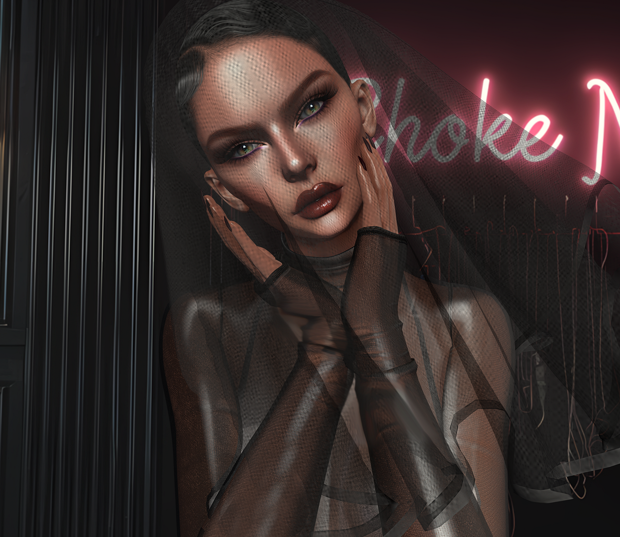 The hair base from addon+ complements this perfectly, grounding the look with a natural flow that feels effortless yet polished. It doesn’t compete with the veil—it supports it, allowing that piece to shine while still maintaining its own quiet presence. And when paired with Midori’s Store; Ashley skin, everything comes together in the most seamless way. The skin has this luminous quality, catching the subtle lighting of the backdrop and reflecting it in a way that feels almost alive. It’s soft, radiant, and incredibly touchable-looking—exactly the kind of finish that elevates an already striking ensemble into something truly mesmerizing.