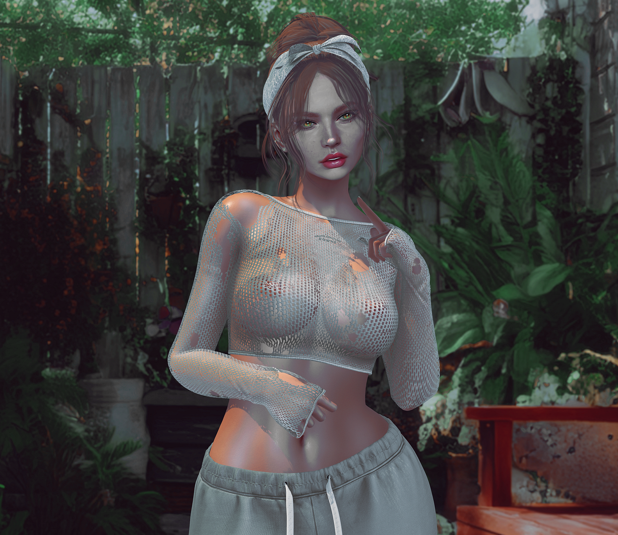 Paired with the stunning look from ROWNE, it just clicks. The ABENI crop top in gray keeps things clean and modern, while the sporty Jun joggers add that relaxed, ready-for-anything feel. It’s the kind of outfit that says you didn’t try too hard—but still absolutely understood the assignment. And then there’s the face of it all, because how could you not pause for a second? The GISELLE skin from VOGUEL is just… soft in the way that spring light is soft. It has that natural glow that doesn’t scream for attention but quietly holds it anyway.