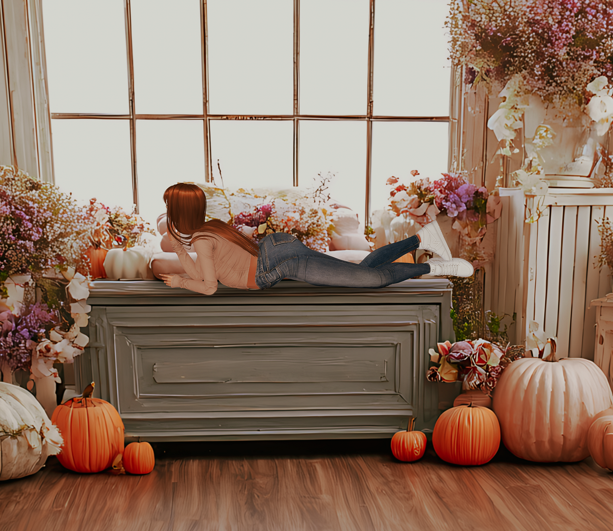 The look starts with the stunning TRES BEAU Alissa skin in shade 2.4, which brings a soft, luminous warmth to the entire scene. It pairs beautifully with the WINGS TF1208 hair, whose effortless flow frames the face in a way that feels both dramatic and natural. Add the adorable “seulgi brown hat” from TENTACIO and suddenly this gothic setting feels extra snug—like the kind of winter day where you can actually enjoy the cold because you’re dressed for it.