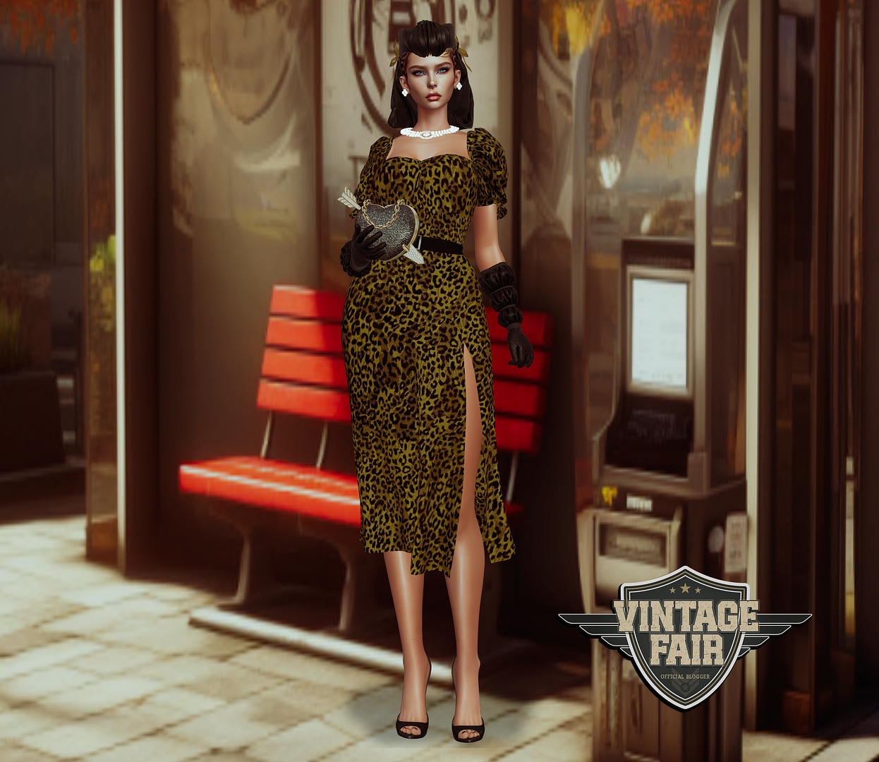 [Ari-Pari] Retro Leopard Dress GRASSHOPPER- GHS Ruched Gloves/ Snood Hat