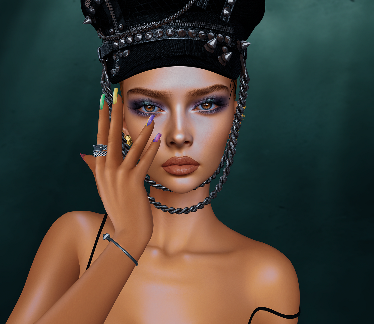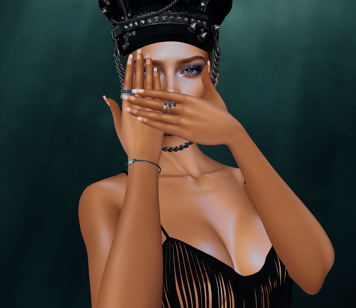 skin: a.b – Alexa – Rose Kiss – MED BROWS hair: TRUTH – Collective- Enigmatic vanity: [DDL] Royal outfit: Absurde Nox– Overalls Mina- Black jewels: [VIPERA] Icona Rings
