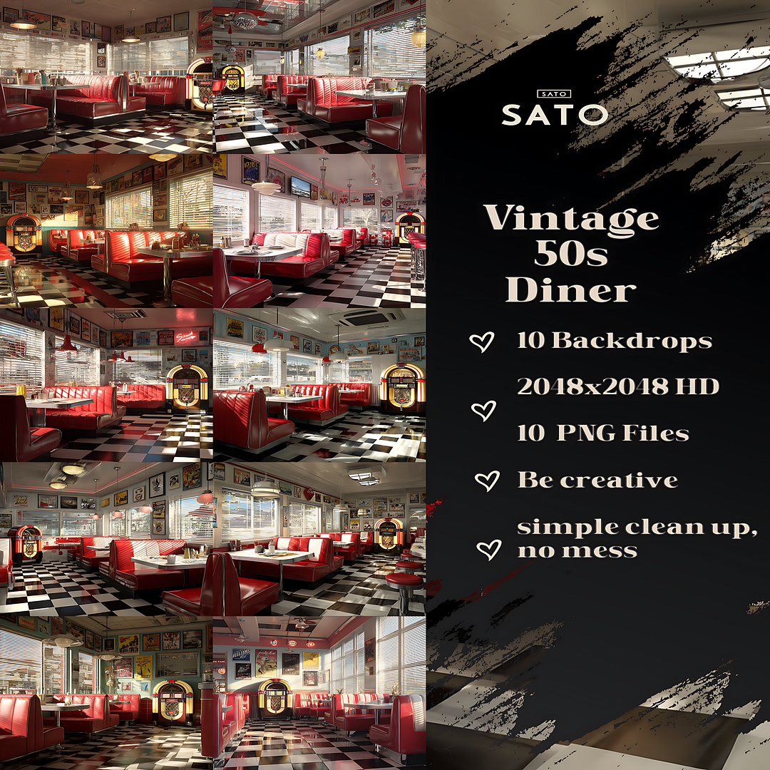 SATO has totally nailed the throwback vibes with their “Vintage 50s Diner” backdrop pack—it’s like stepping straight into a time machine! I couldn’t resist heading over to the Shop & Hop event to check it out, and let me tell you, I was absolutely living for it. I browsed, I swooned, I probably did a million double takes—there’s just that much to see! Trust me, this event is bursting with retro charm and must-have goodies, so grab your shopping shoes and go treat yourself. You deserve it!