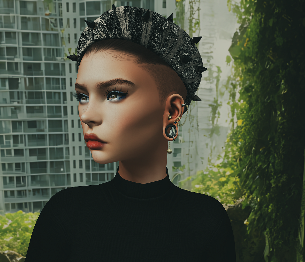 skin: a.b – Alexa – Rose Kiss – MED BROWS vanity: ALBA – Amour Eyeliner/ HER – SHANE HAIRBASE – BROWN 11 jewelry: La Plume– Le Matou outfit: Shi-Leather- Black metal / [RED GIRL] Ami Top & Pants Black Velvet backdrop: SATO– Abandoned Interior