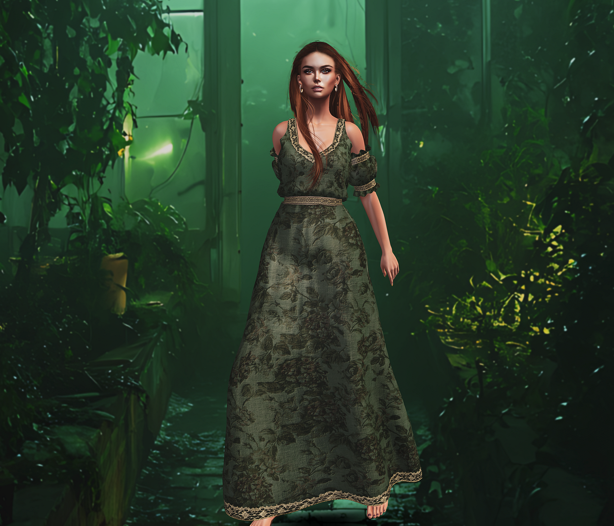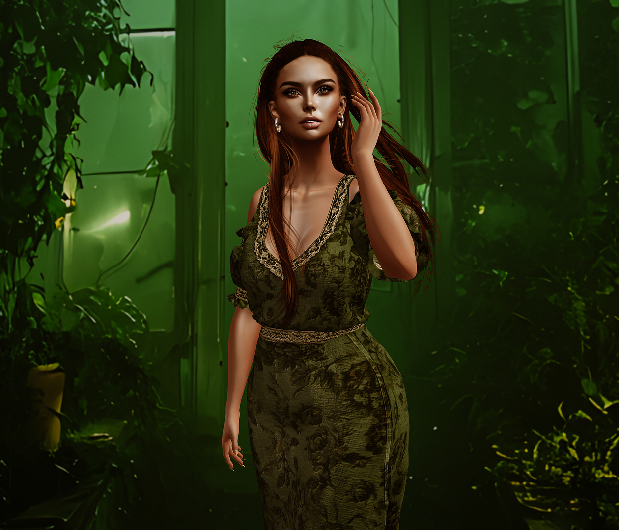 skin: tres beau – allie skin (2.4) with brows hair: DOUX – Ryder Hairstyle outfit: The Muses . Gracie Dress / The Muses . Gracie Sleeve . Fit 2 jewel box: Yummy– Hoop Set – Single Pearl Row/ Veechi – Short Almond backdrop: SATO– Scary Green House@ The Sale Room