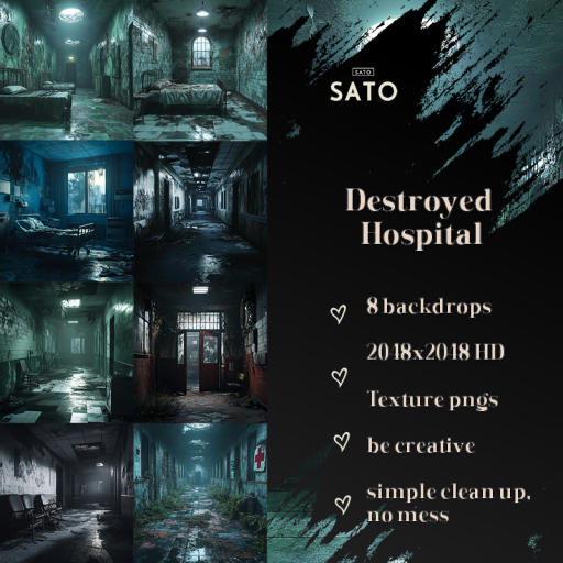 I was totally inspired by SATO and their WOW WEEKEND offering, “Destroyed Hospital,” which I’m a bit late to share, but trust me—it’s absolutely incredible! I hope this pack sparks some creativity in you as it did for me. Speaking of amazing things, check out this Valentine Bodysuit by Madame Noir, now available at the LOVE IS A BATTLEFIELD event—plus the Venice Eyelook shadow and liner that completes the whole vibe.