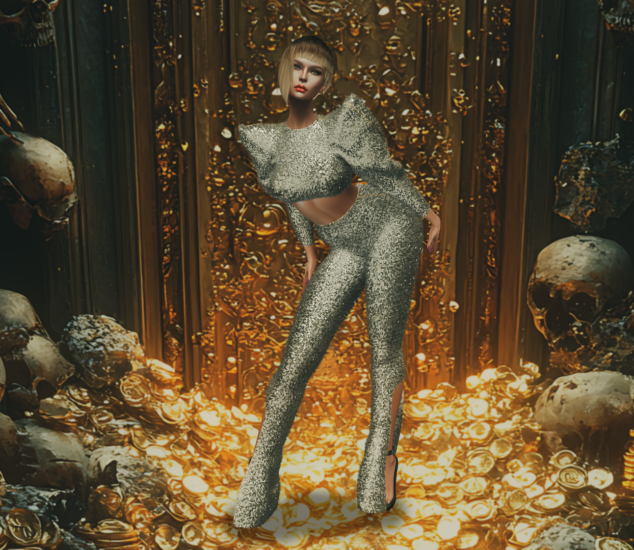 outfit: MADAME NOIR– Elisa Sequin Top/ Elisa Sequin Pants – Champagne