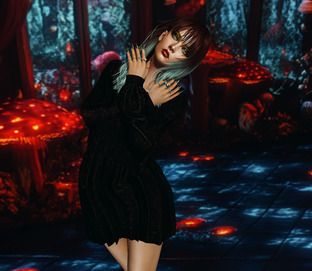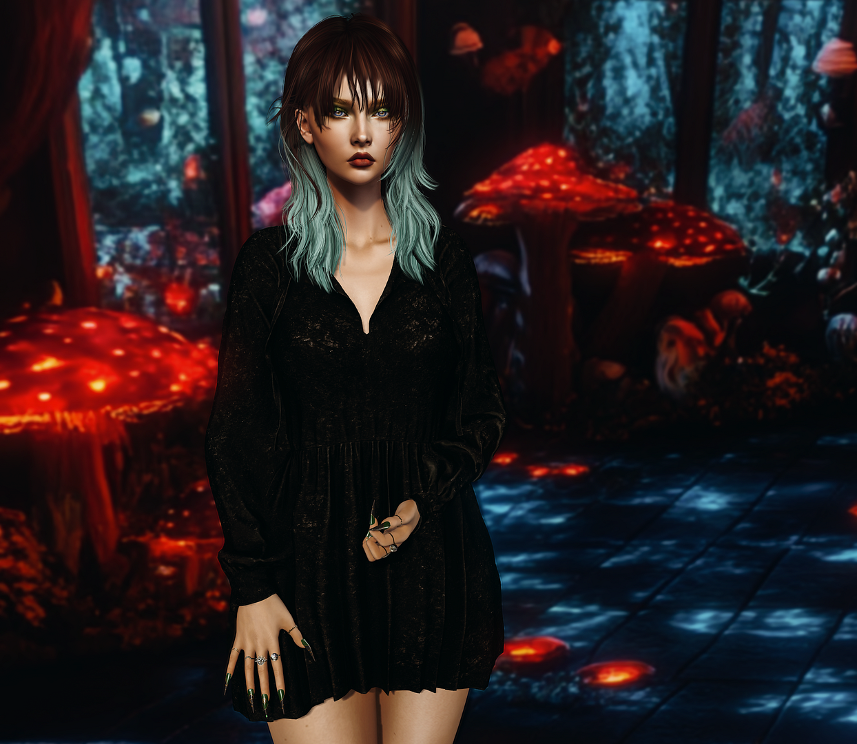 I’m using the SATO “Fantasy Mushroom” backdrop from their KAWAII SECRETS pack (grab it at the main store, trust me you’ll want this) and it perfectly captured the chaotic mix of bright and dark I’ve been feeling. It’s like everything’s a little blurry and off-kilter—oh wait, was I just doing laundry or was that a fever dream? Who knows, haha!