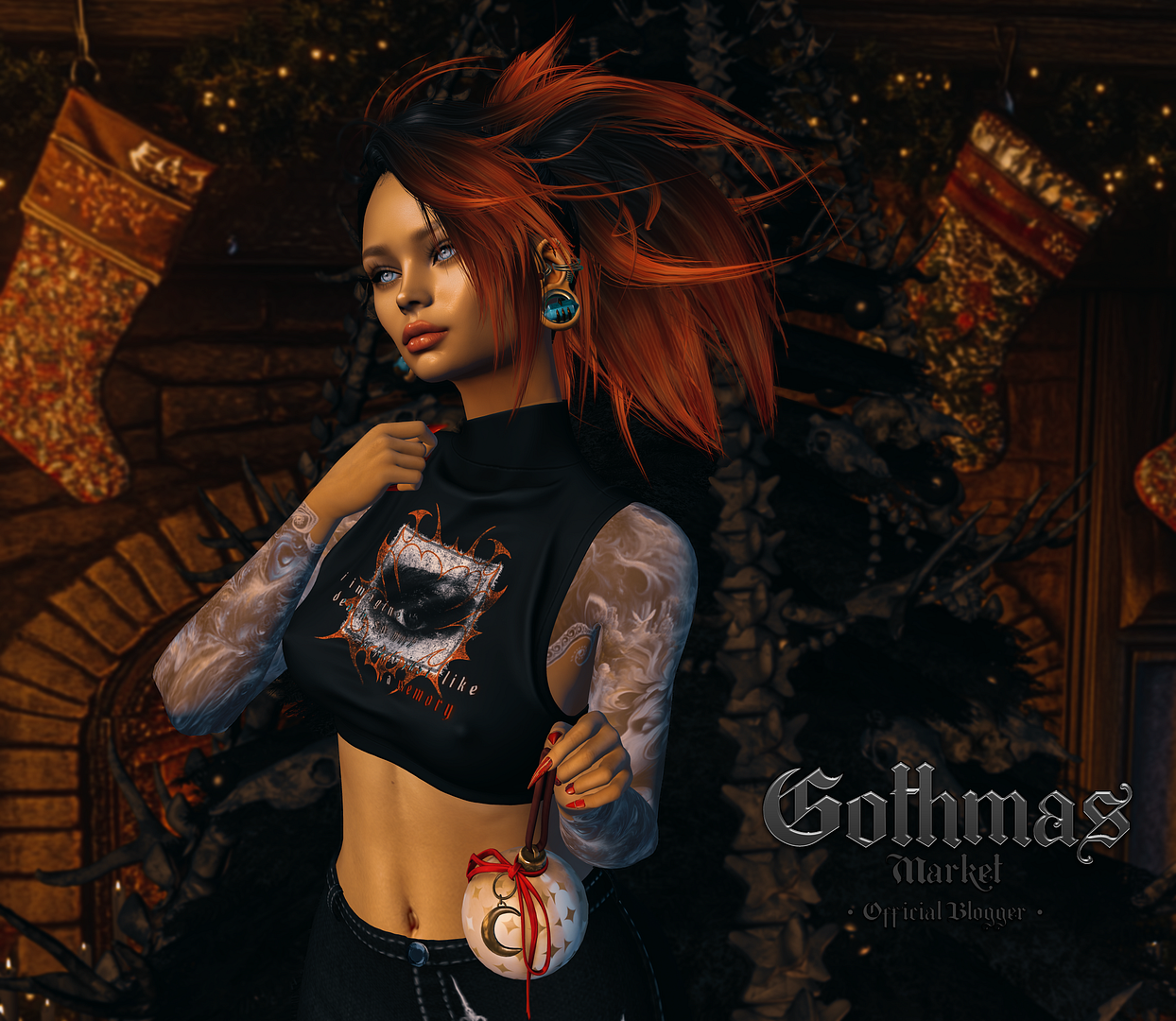 Completing this darkly poetic ensemble is the AZOURY “Insoupconnable” arms, a mechanical marvel that feels like wearable art, and the tousled, windswept MONSO “Aver” hair, which adds just the right amount of wild mystery.