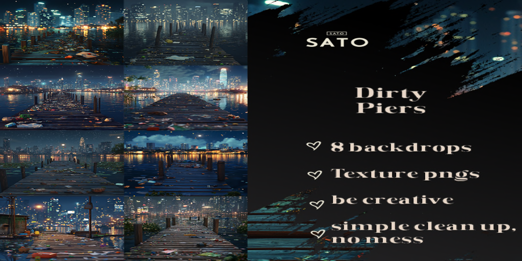 Today’s blog is super close to my heart, and I know I’m not the only one who feels this way. The ocean and the incredible creatures that call it home are something I can’t stop thinking about. That’s why when my sponsor, SATO, dropped their latest backdrop pack for the BLUE EVENT MONTHLY, I just had to share it but tucked in it was a pack called —”Dirty Pier,” and it truly spoke to me on a deep level. SATO knows me too well!