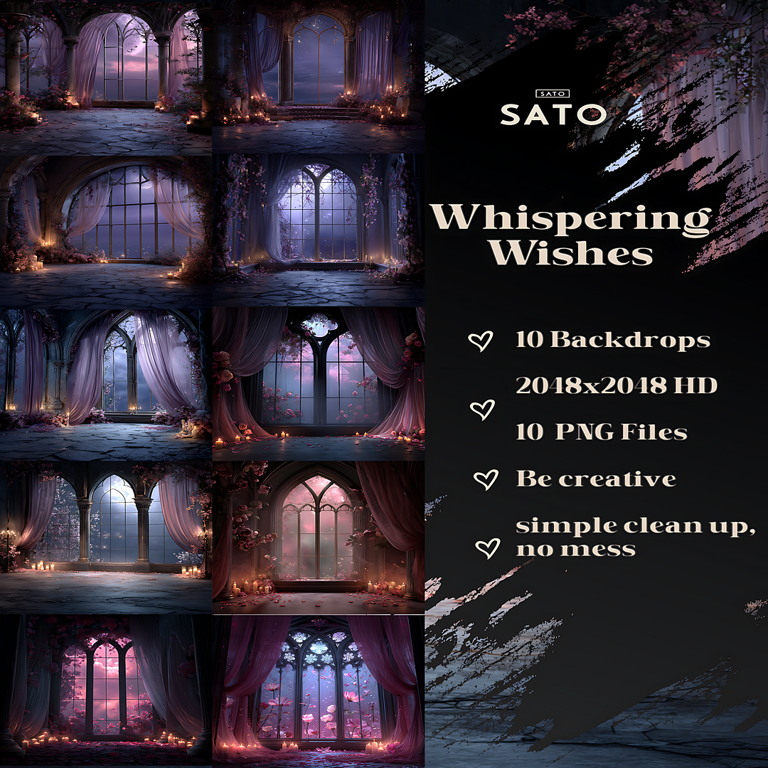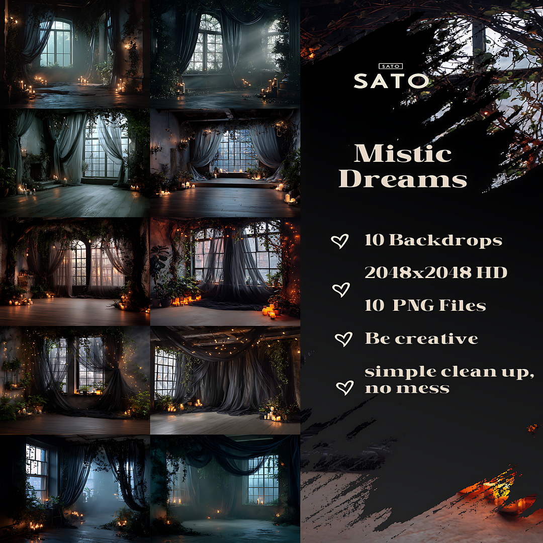 First up is the SATO backdrop, “Mistic Dreams,” designed specifically for Black Fair going on from Sept 14th to the 28th. This piece takes you on a journey back in time, with its aged, warm aesthetic. Imagine a beautiful window draped by delicate flowers and candles, creating a cozy, nostalgic atmosphere that’s perfect for any event.
