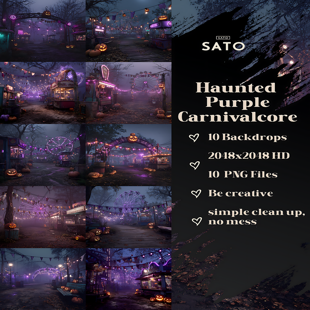 Welcome to a carnival where the whimsical meets the eerie in a splash of haunted purple vibes! SATO’s “Haunted Purple Carnival” backdrop for PLANET29 really sets the stage for a uniquely funky and fun adventure. Picture vibrant hues of purple, mysterious carnival tents, and an atmosphere that’s alive with playful spookiness.