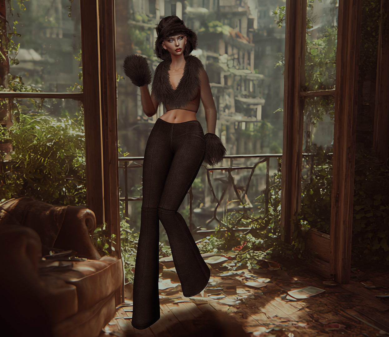 Put all together, the look becomes a love letter to contrast: sexy yet understated, soft yet armored, modern yet wild. It’s fashion thriving in the ruins, beauty rising from the rubble, and a reminder that even in a rundown world, style still survives—no, dominates.