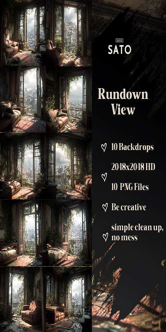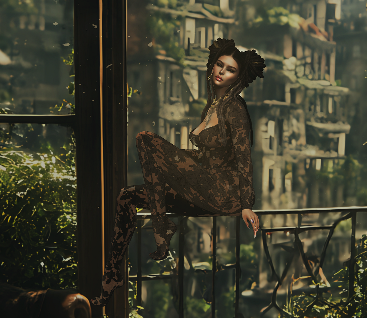 Stepping into SATO’s Rundown View backdrop feels like wandering through a forgotten corner of the city where everything is cracked, rusted, and strangely beautiful. It’s the kind of place where the world feels broken—but the aesthetic is absolutely thriving. That perfect mix of decay and elegance makes it the ideal stage for a look that leans into danger, beauty, and effortless confidence all at once. Why else would I use it twice? I cannot get enough!