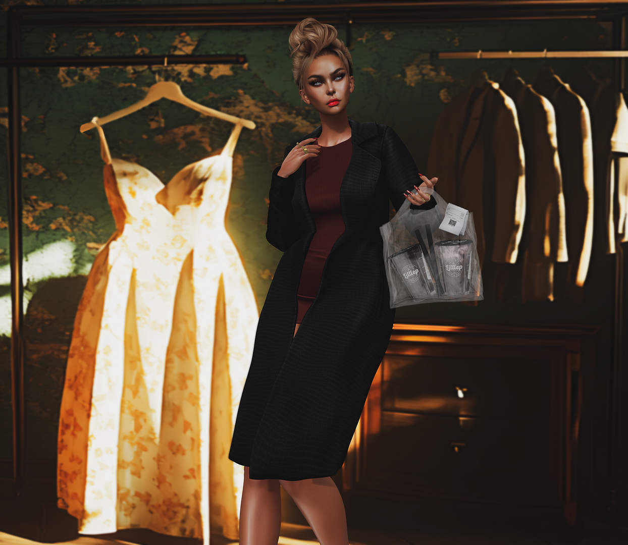 Huge love to the always-fierce MADAME NOIR for these killer “Night Boots“, and to S&P for the ultra-glossy, ultra-gorgeous “Wednesday Dress“. Topped off with the dreamy glow of the DOE “Lantern Hat” and the luxe flow of LELUTKA’s “Sublime” mesh hair in Dark Brown—this fit is pure magic.
