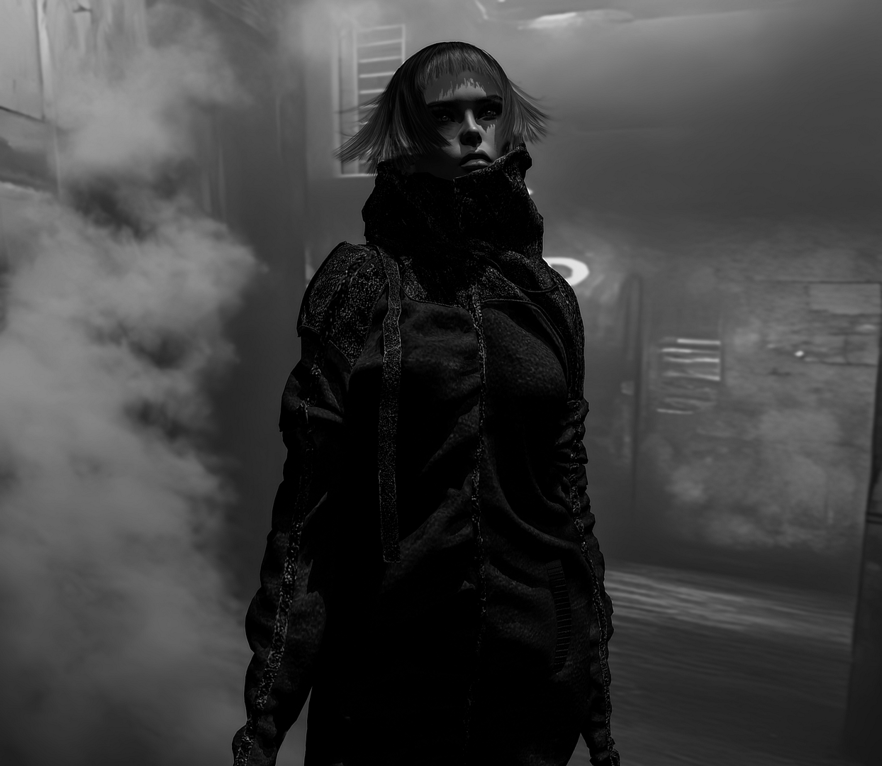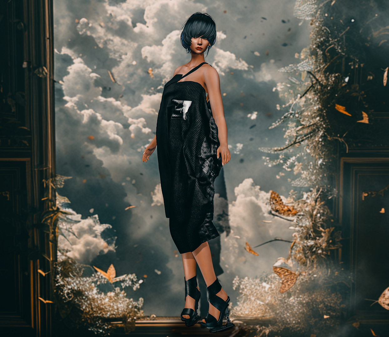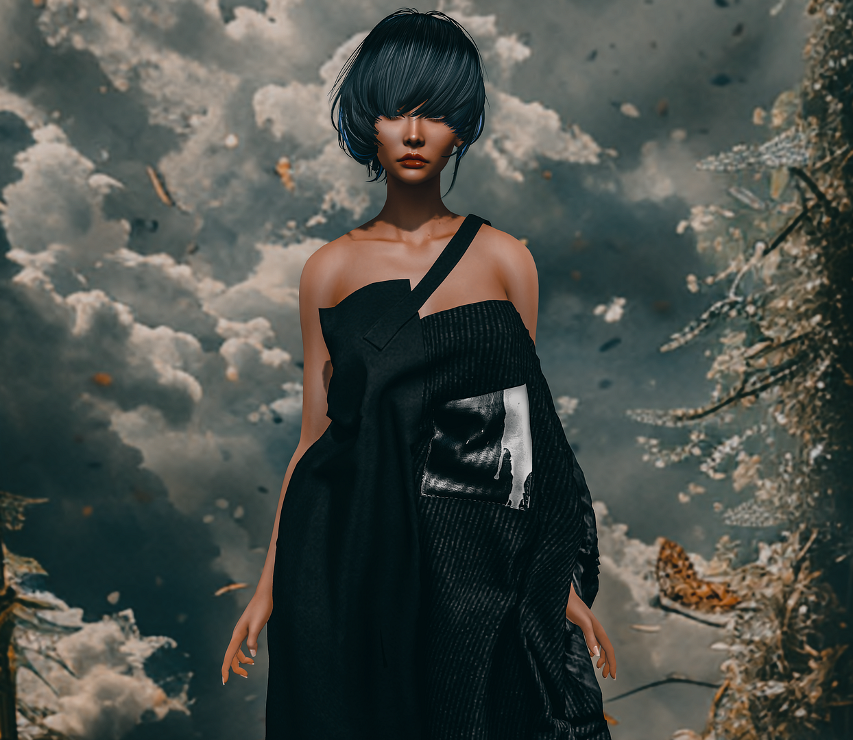 You see, the backdrop doesn’t just sit behind you; it frames you, enfolds you, and gives your story a setting rich with depth and mystery. Despite its melancholic undertones, there’s an undeniable warmth. Where else can you find a use for AZOURY and their “Velitor” umbrella/hat combo? It works perfectly with .SHI and the “Altira” hair! I swear, pass me a cigarette and a tea right now!