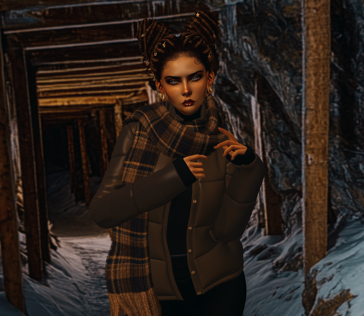 Now, no one’s braving the ice without the right gear, am I right? That’s why I’m rocking my SORUMIN “Puffer Jacket” to stay cozy, and the PARE “Aradia leggings and boots” to tackle the elements in style. Gotta be warm, but who says you can’t look fabulous while doing it? To kick it off, I’ve got my GUAPA “Victoria” skin, DOUX “Apple” hair, and a little pop of glam with REVERIE “Glazed Eyeshadow”. Ready to explore the Ice Cave? Let’s go! With these PKC “Brenda” earrings to light the way, every step is brighter!
