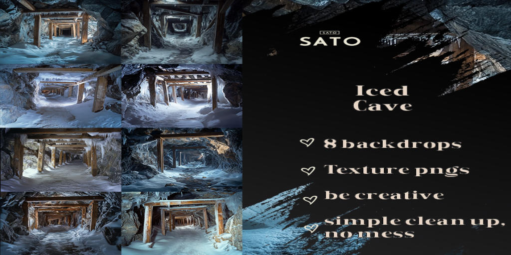 So, let me tell you about SATO’s latest creation: the “ICE CAVE” backdrop pack. It is everything I’m feeling right now—majestic, detailed, and textured to perfection! Seriously, you’ll feel like you’re on an epic adventure, discovering lost artifacts, and hey, the chill isn’t so bad when you’re wrapped in this stunning scenery. Just look at it!