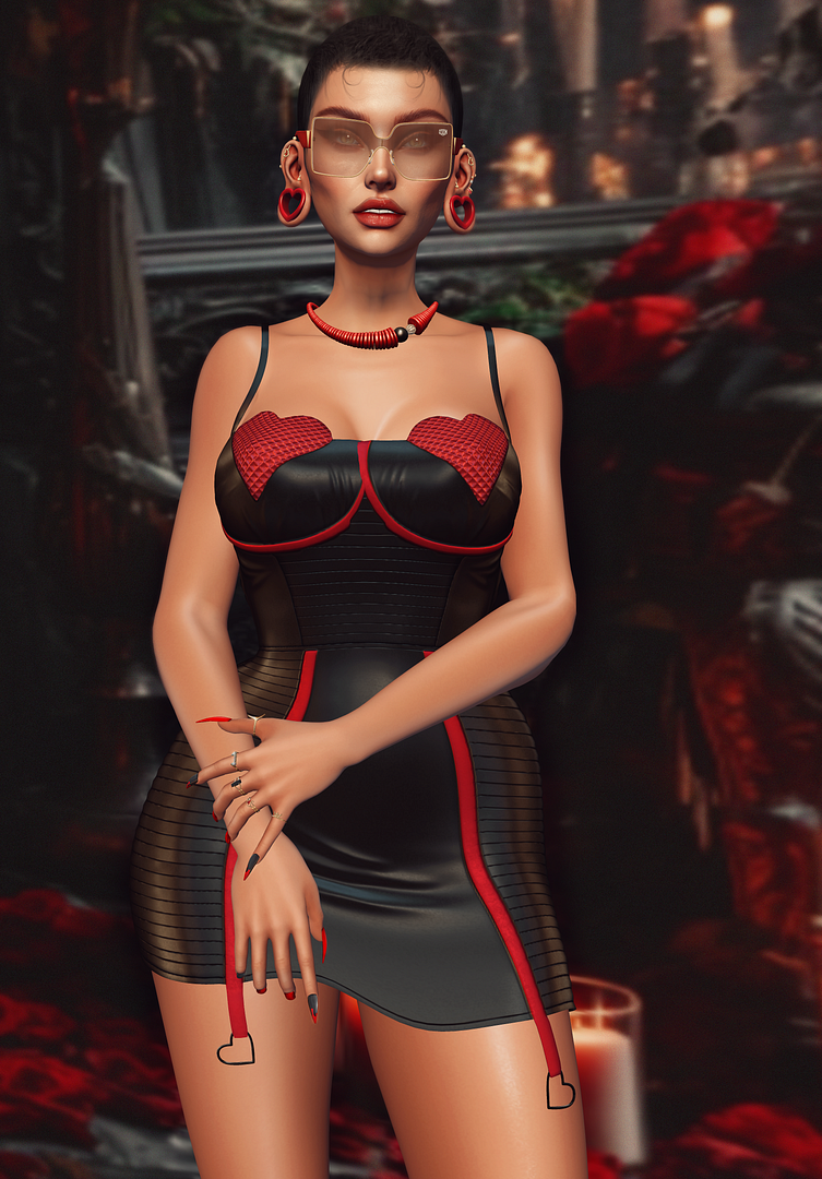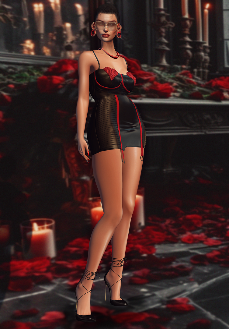 CLOSET: LEROY: Aysha Dress [LaraX] *sponsor/available now at C88) KUNGLERS: Zazu necklace [Gos]: Elise Laced Stilettos – Fetish SATO: Gothic World Backdrop